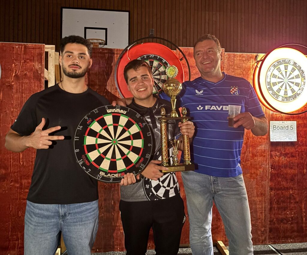 Zangberg – Die Mehrzweckhalle war am Samstag fest in Dart-Hand. Beim 3. VG-Steeldartturnier des Sportvereins Zangberg traten 53 Spielerinnen und Spieler im Doppel-K.O.-System gegeneinander an. Gespielt wurde bis zum Viertelfinale im Modus 301 double out, ab dem Halbfinale auf 501 double out. Die Plätze waren fast komplett besetzt, die Stimmung großartig. Nach spannenden Duellen siegte Jonas Felbinger im Finale gegen Oliver Bajo, Platz drei ging an Anthony Schroth. Die Erstplatzierten erhielten Prämien, der Sieger zusätzlich den Wanderpokal und durfte die Finalscheibe signieren. Für Überraschung sorgte Vorjahressieger Kruse, der schon nach zwei Spielen ausschied. Ein Höhepunkt war Felbingers 180 im Finale, bei dem das Average zeitweise knapp 90 Punkte betrug.