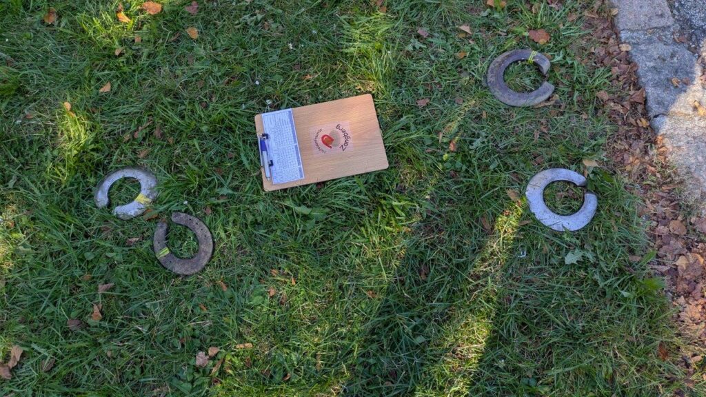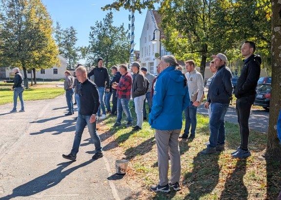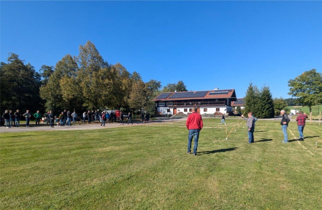 Zangberg. Bei herrlichem Sonnenschein fand am Freitag, 3. Oktober 2025, das 20. Hufeisen-Ortsturnier auf dem schönen Dorfplatz statt. Veranstaltet wurde das Jubiläumsturnier von der Abteilung Hufeisenfreunde der KSK Zangberg. Ab 13 Uhr traten die acht Hobbymannschaften gegeneinander an. Geworfen wurde mit normalen Hufeisen oder Schneideisen auf 16 Meter Wurfweite mit Olympischer Wertung (3/5/7/9 Punkte).