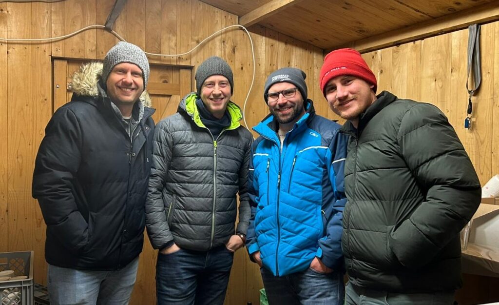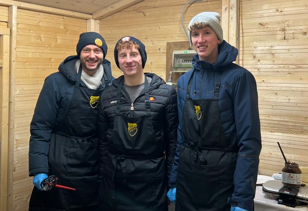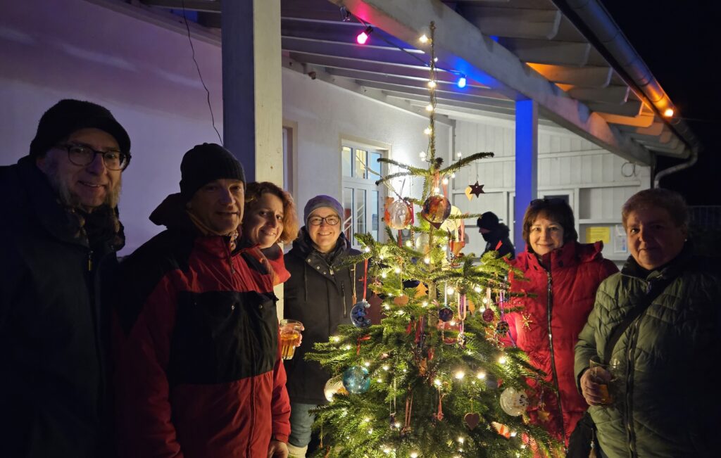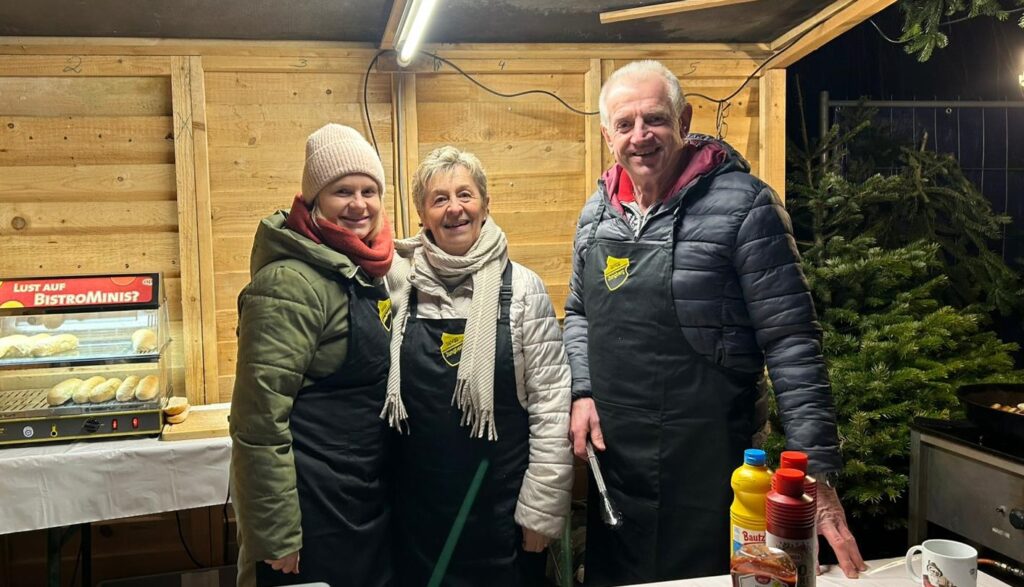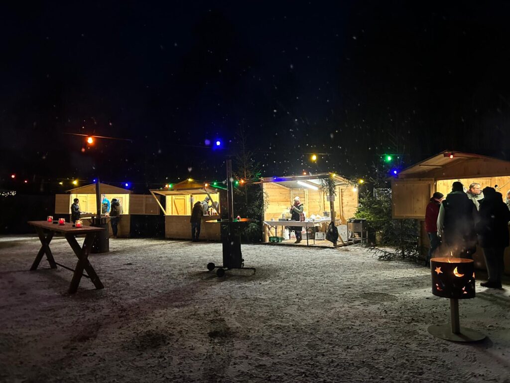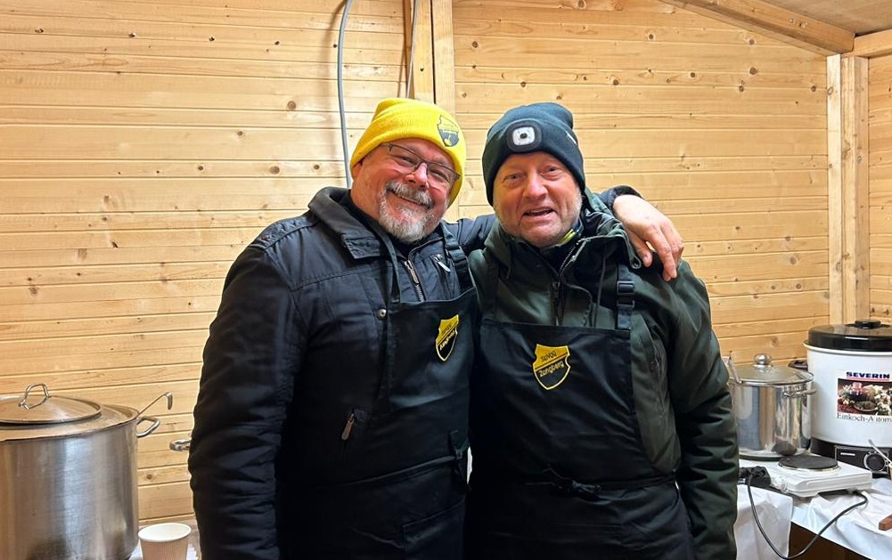Zangberg am Dorfweiher – Der Glühweinstand lockte heuer mit Zimtsternen, Waffeln, Bosna, Gulasch- und Kartoffelsuppe, Glühwein und Hot Aperol – und ein paar zarten Schneeflocken, die heimlich die Szene beobachteten. Die Feuertonnen knisterten herrlich und wärmten von Außen und der Glühwein von Innen.